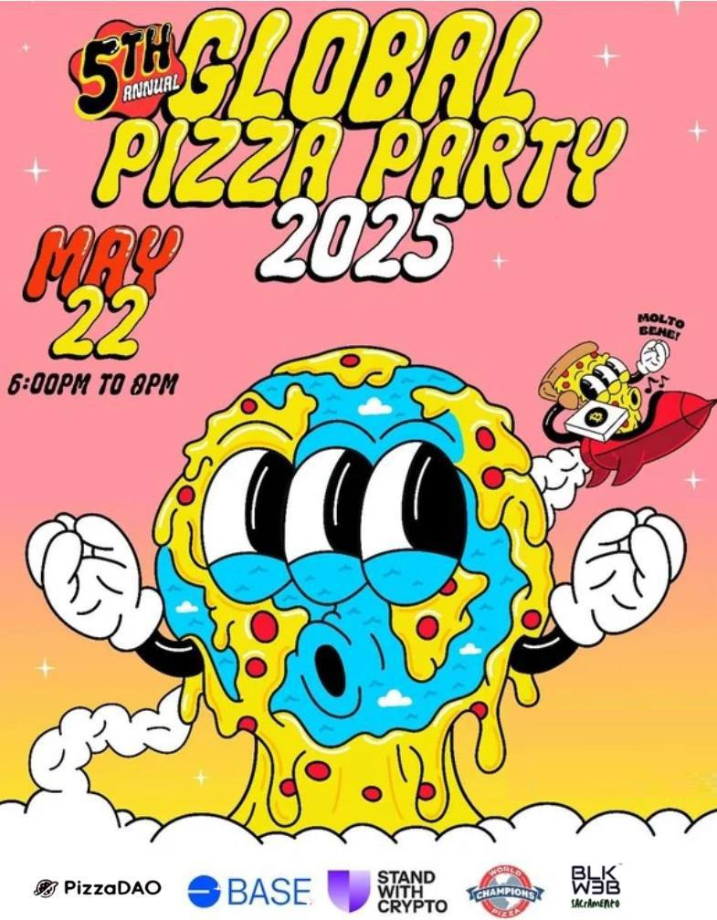 You're invited to PizzaDAO's 5th annual Global Pizza Party in honor of Bitcoin Pizza Day. It's been 15 years since May 22, 2010, when Laszlo Hanyecz bought two pizzas for 10,000 bitcoin. Today, 10,000 bitcoin buys a lot more than two pizzas! We think that's a big deal. So we're throwing our 5th Global Pizza Party! We're expecting over 25,000 total attendees across more than 400 cities worldwide.