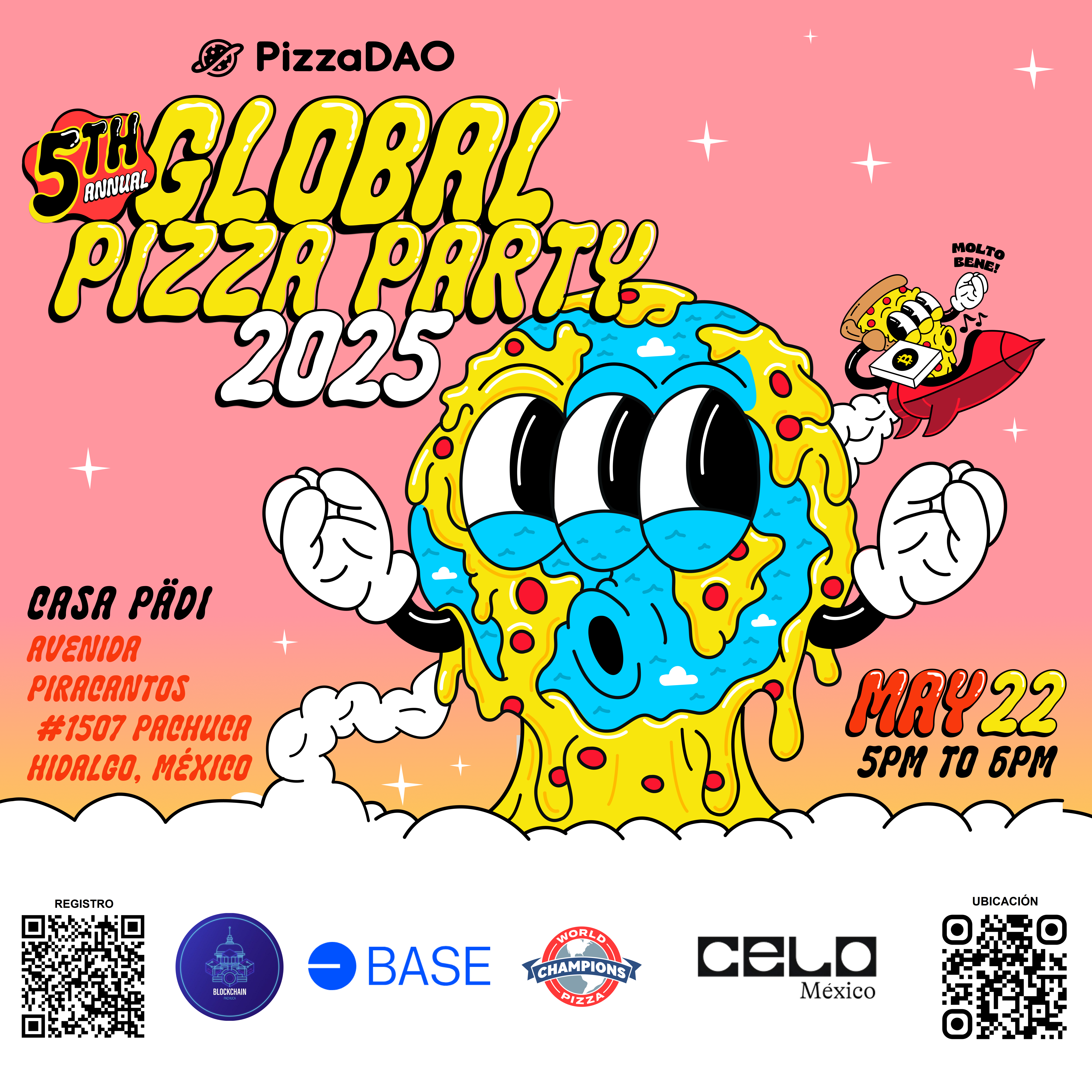 Únete a la 5ª edición del Global Pizza Party de PizzaDAO y celebra con nosotr@s por primera vez en la bella airosa el legendario Bitcoin Pizza Day.