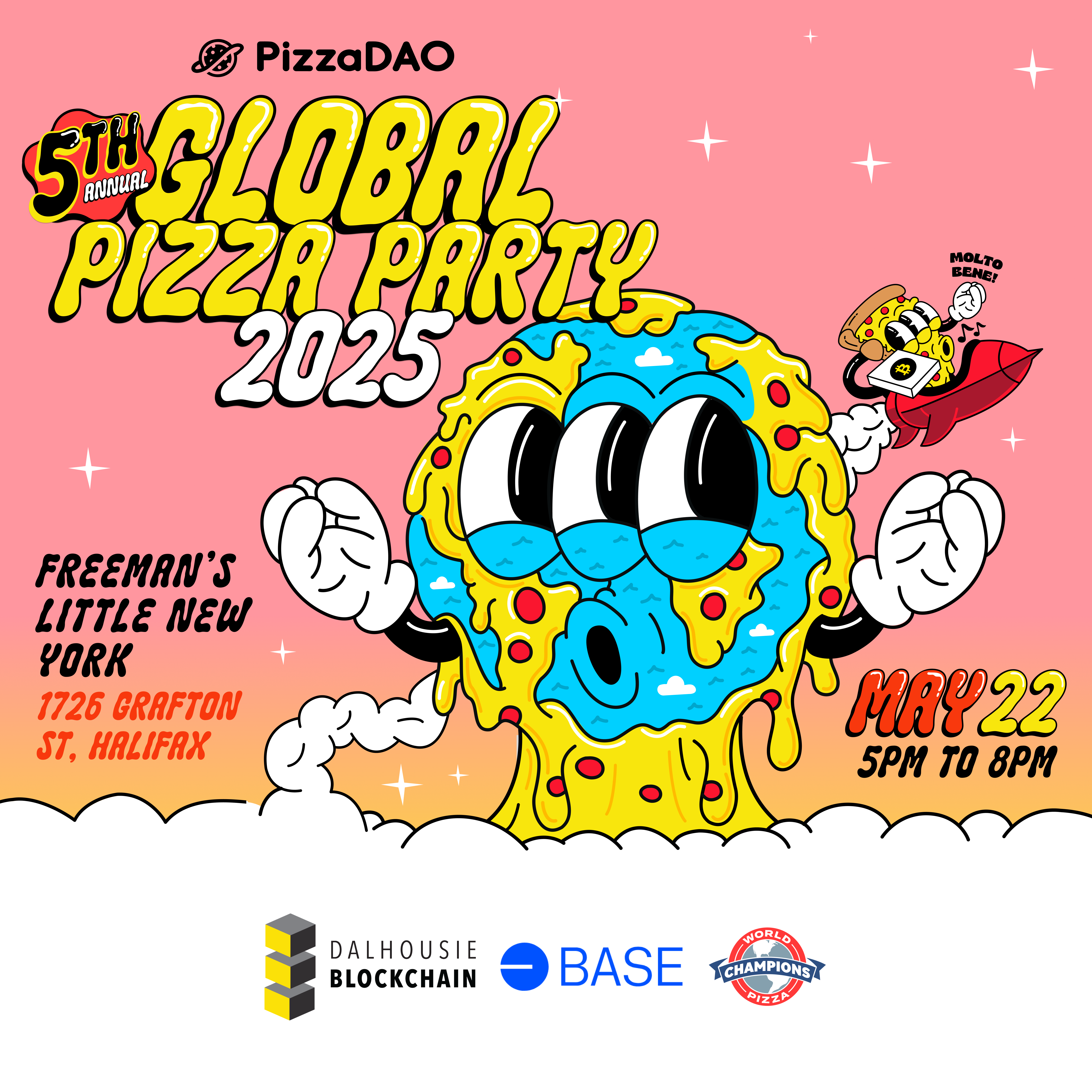 You're invited to PizzaDAO's 5th annual Global Pizza Party in honor of Bitcoin Pizza Day. We're excited to host you in collaboration with our friends Base and the World Pizza Champions.