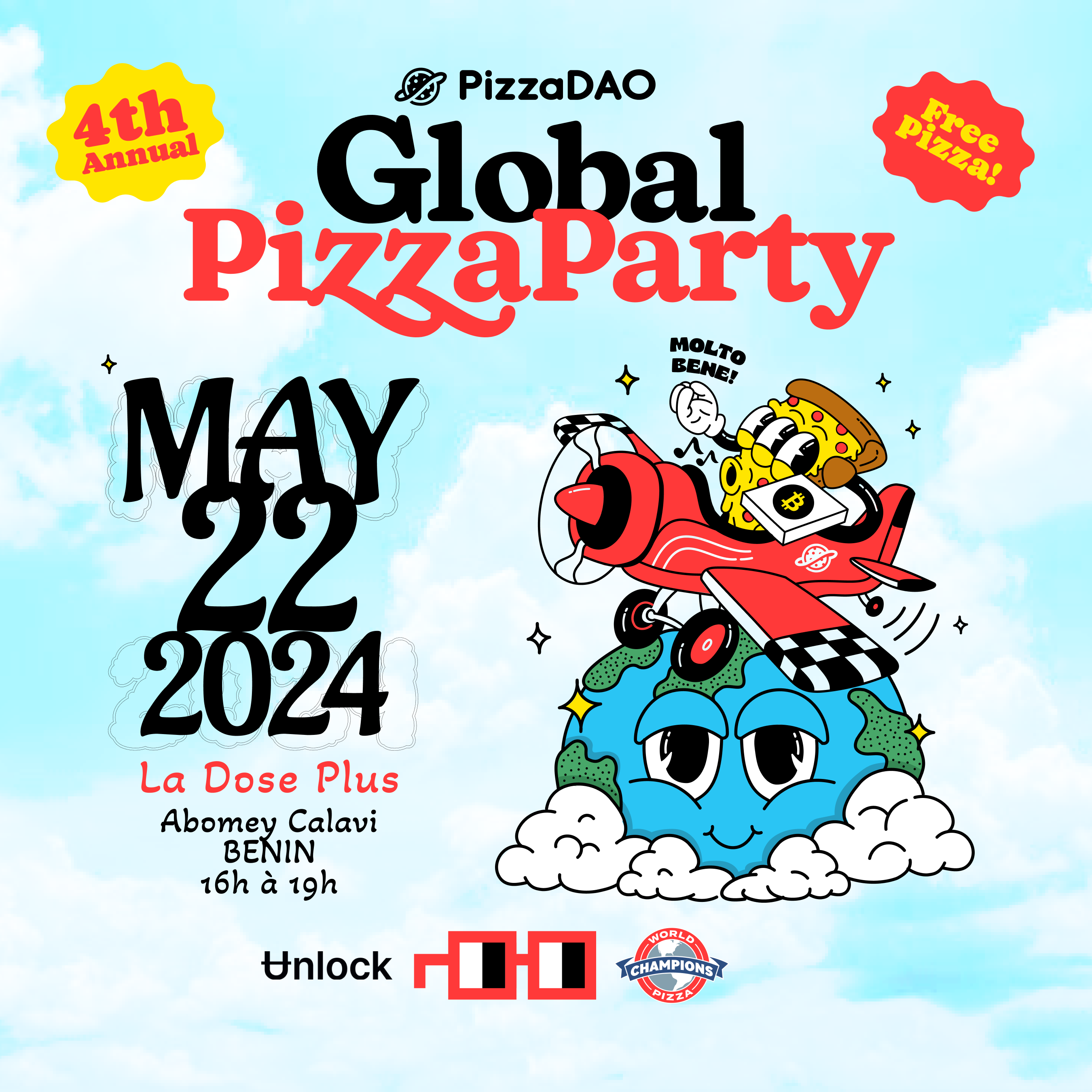 Pour le #BitcoinPizzaDay, retrouvez nous ce 22 Mai à Calavi Kpota au Bénin plus précisément dans le restaurant “La Dose Plus” pour cet apéro totalement gratuit.