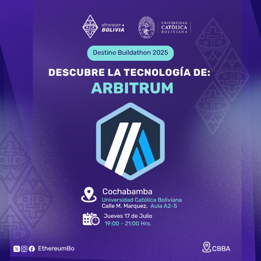 📍 Lugar: Universidad Católica Boliviana, Aula A2-5 (Calle M. Márquez – Cochabamba) Este evento forma parte del camino al Destino Buildathon 2025, así que si quieres prepararte para competir o simplemente aprender más sobre tecnología blockchain, ¡no te lo puedes perder!