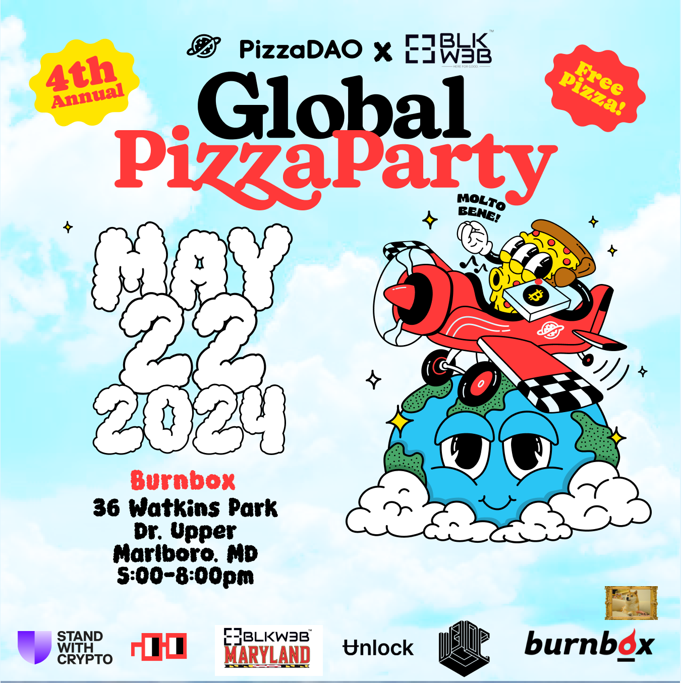 Come join PizzaDAO, BLKW3B, BLKW3B MD and Web3DC & friends for a global community celebration of Bitcoin Day!