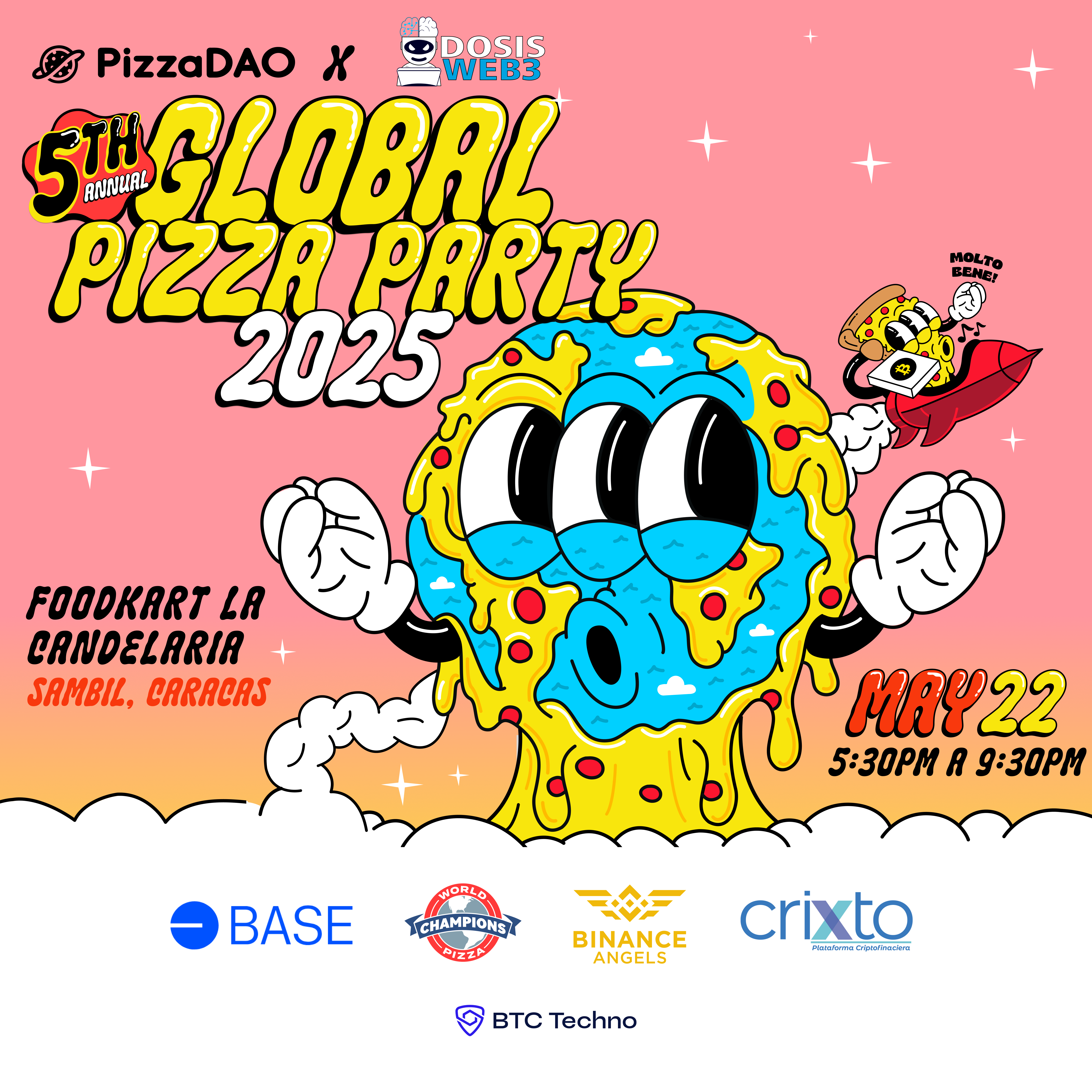 En colaboración con nuestros amigos de World Pizza Champions & Base festejaremos nuestra segunda Global Pizza Party en Caracas, sumándonos a una red global con más de 25.000 asistentes en +400 ciudades 🌎🍕.