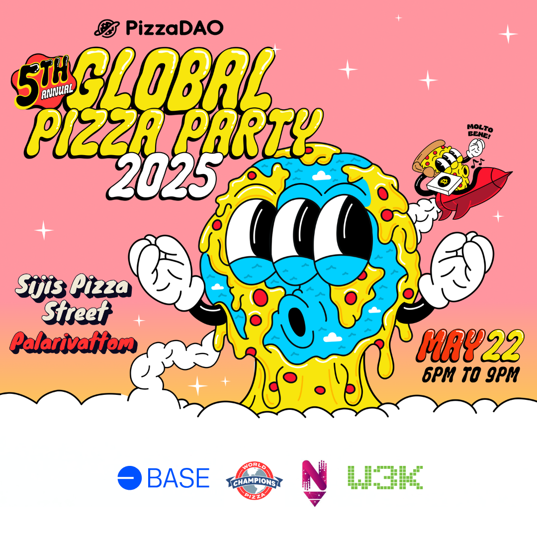 Join us for a slice of global celebration right here in Kochi! On May 22nd, we're bringing together pizza lovers, crypto degens, and curious minds for a fun-filled evening of conversations, connections, and of course ā free pizza!