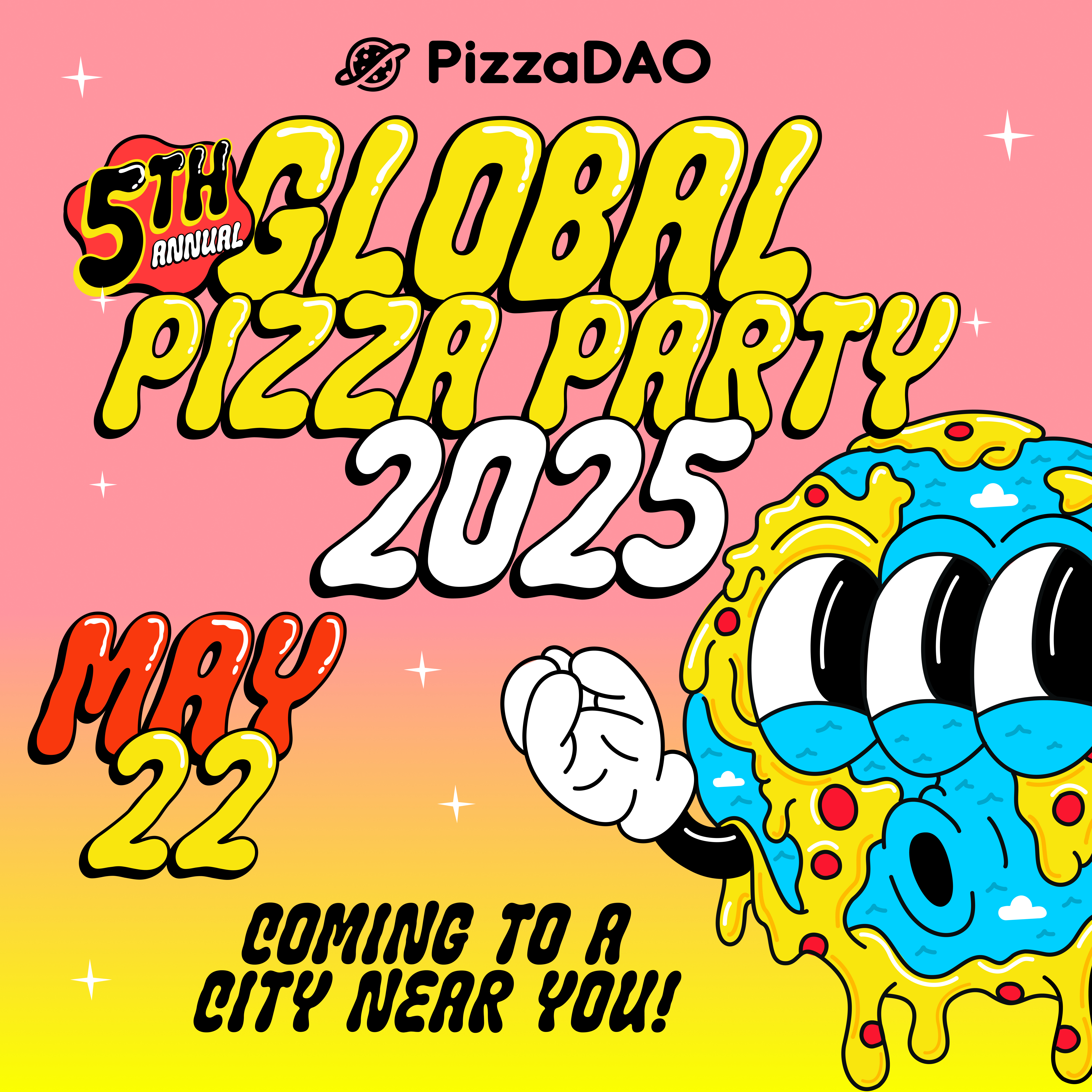 You're invited to PizzaDAO's 5th annual Global Pizza Party in honor of Bitcoin Pizza Day. We're excited to host you in collaboration with our friends Base and the World Pizza Champions.