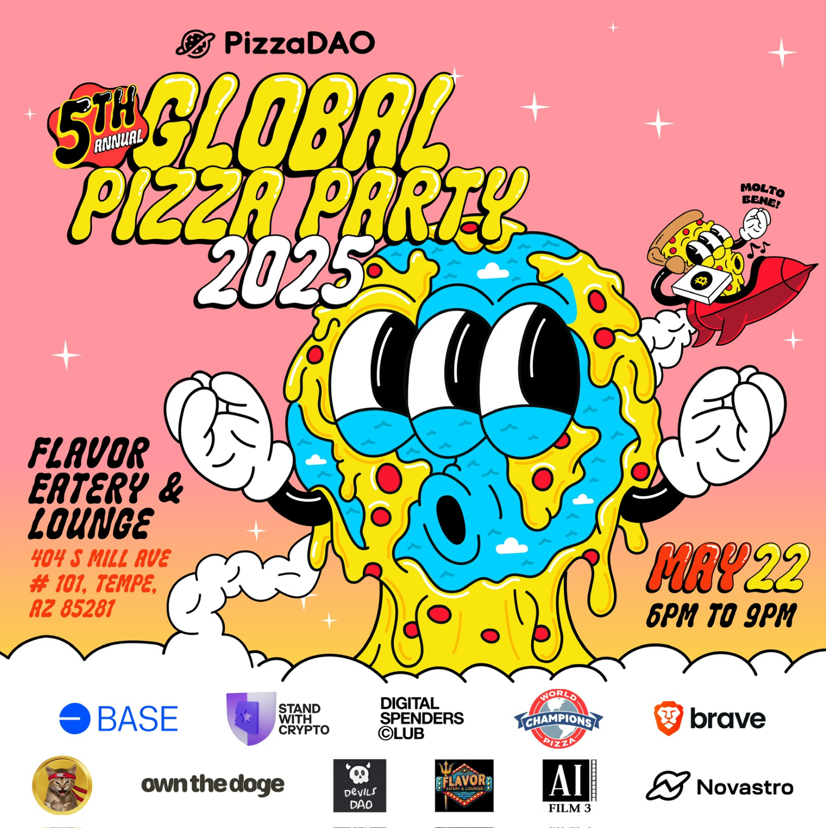 You're invited to PizzaDAO's 5th annual Global Pizza Party in honor of Bitcoin Pizza Day.