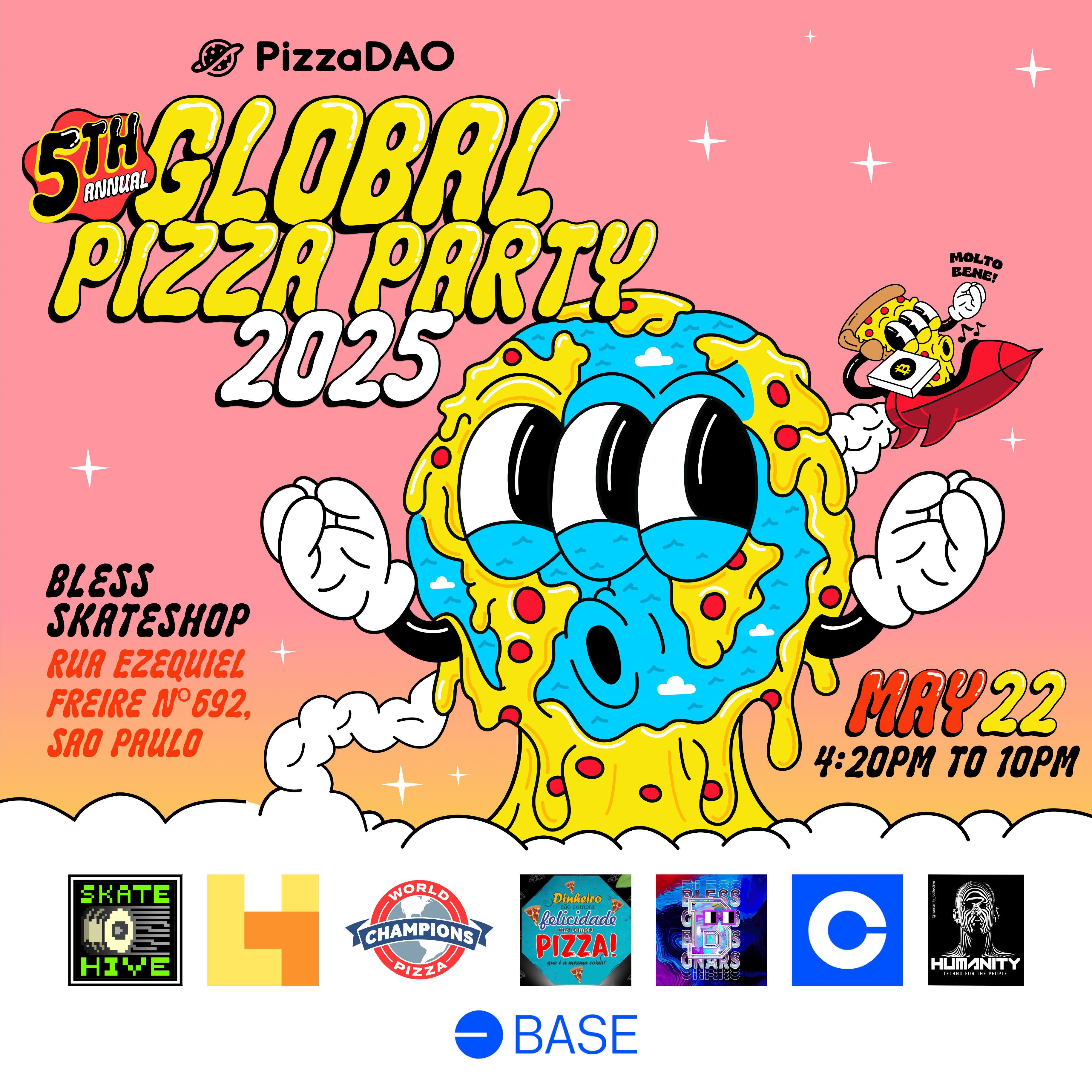 Agora, em São Paulo, o Global Pizza Party 2025 se transforma em uma experiência única, misturando pizza, skate, arte, música e web3 em um encontro inesquecível!