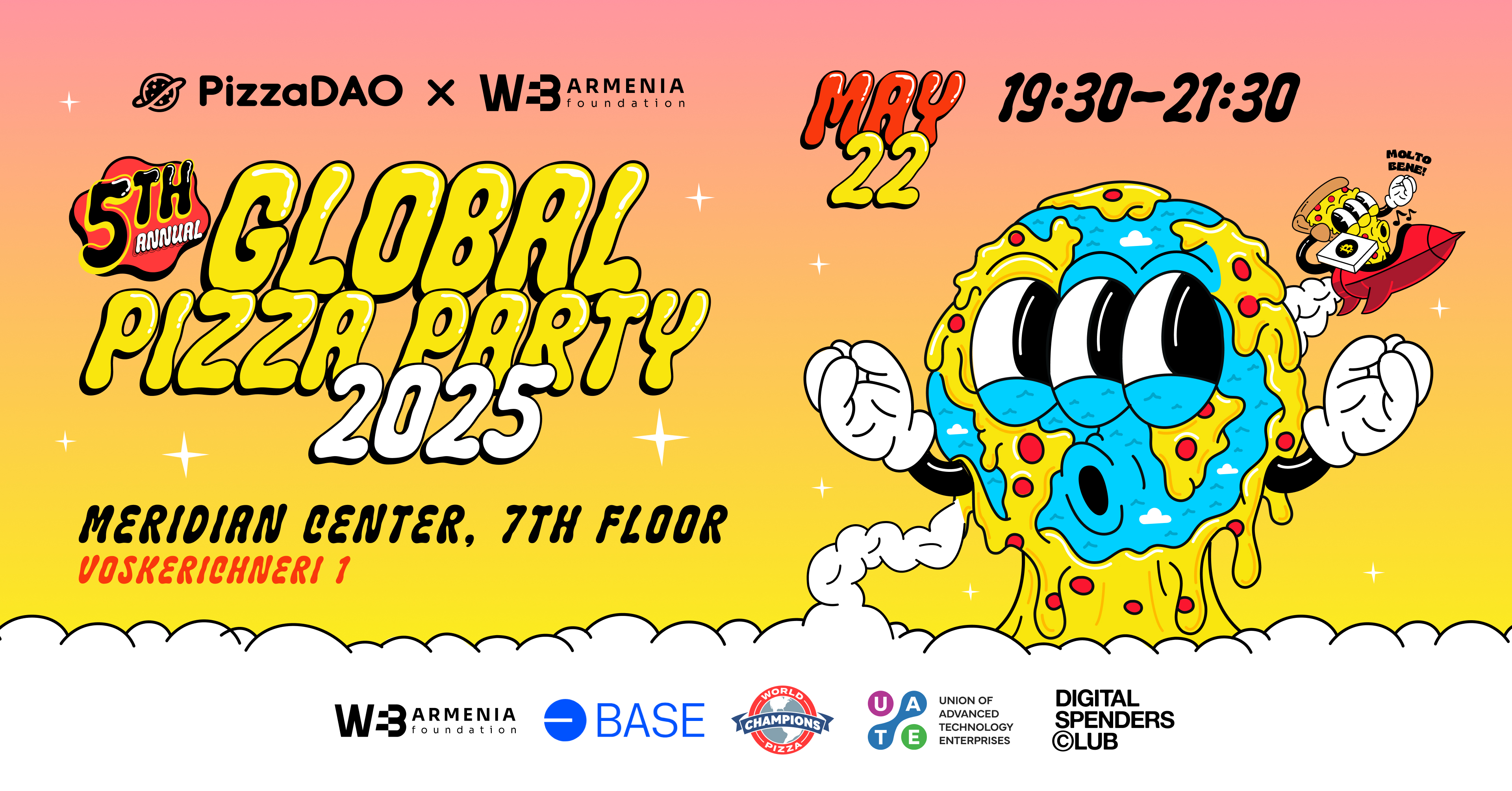 We think that’s worth celebrating. That’s why Yerevan is joining over 400 cities and 25,000+ people around the world for the Global Pizza Party — where pizza meets Web3.