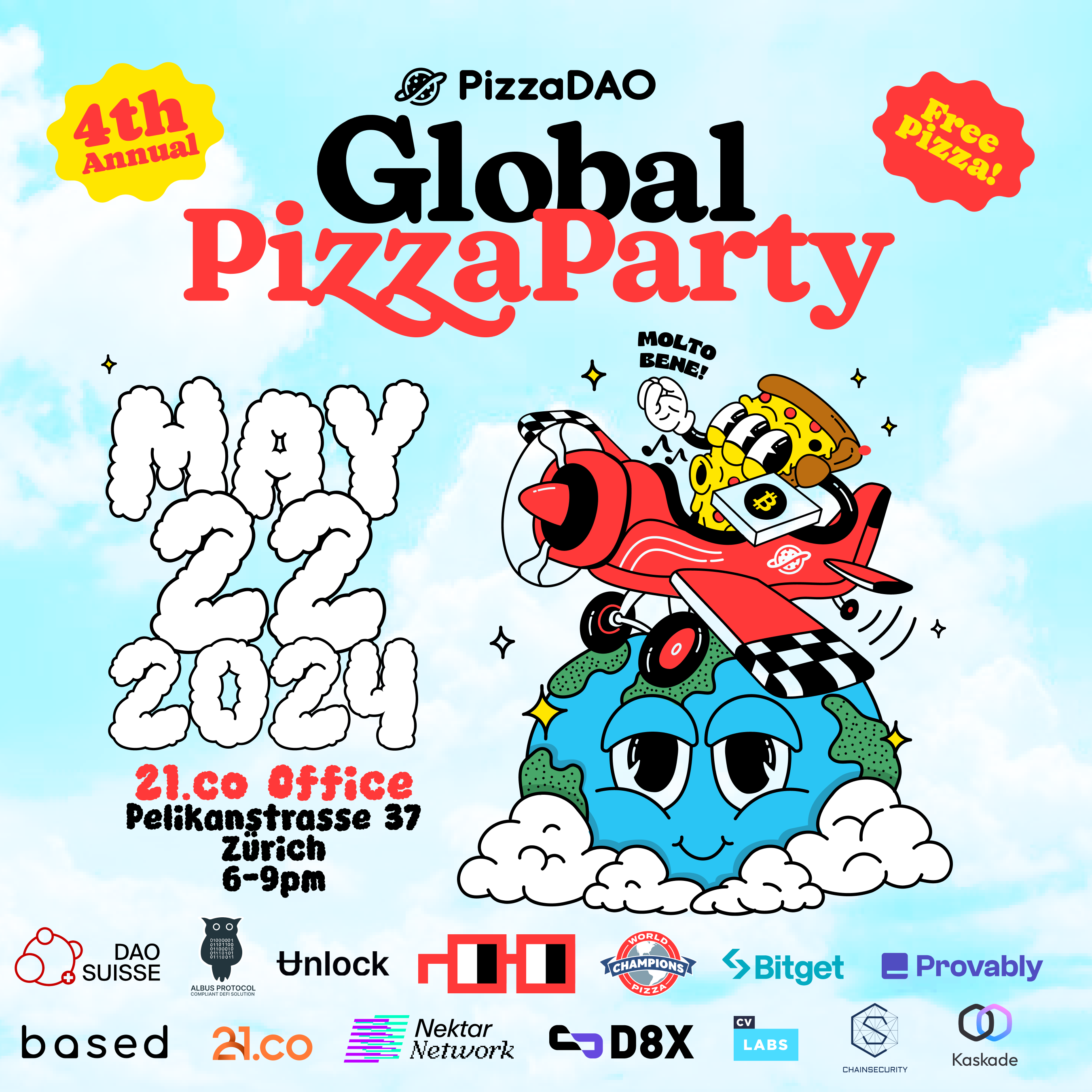 We think that's a big deal. So in partnership with our friends at NounsDAO, Unlock Protocol, and the World Pizza Champions we are throwing our biggest Global Pizza Party yet! We're expecting well over 10,000 total attendees across more than 150 cities worldwide.