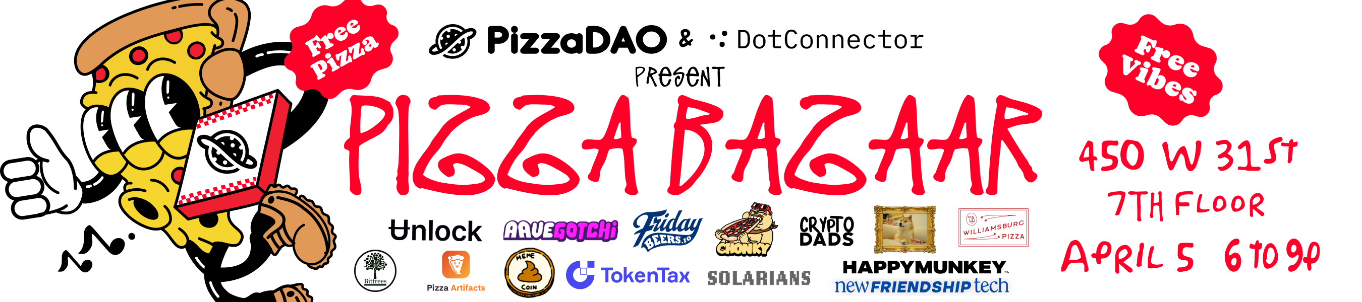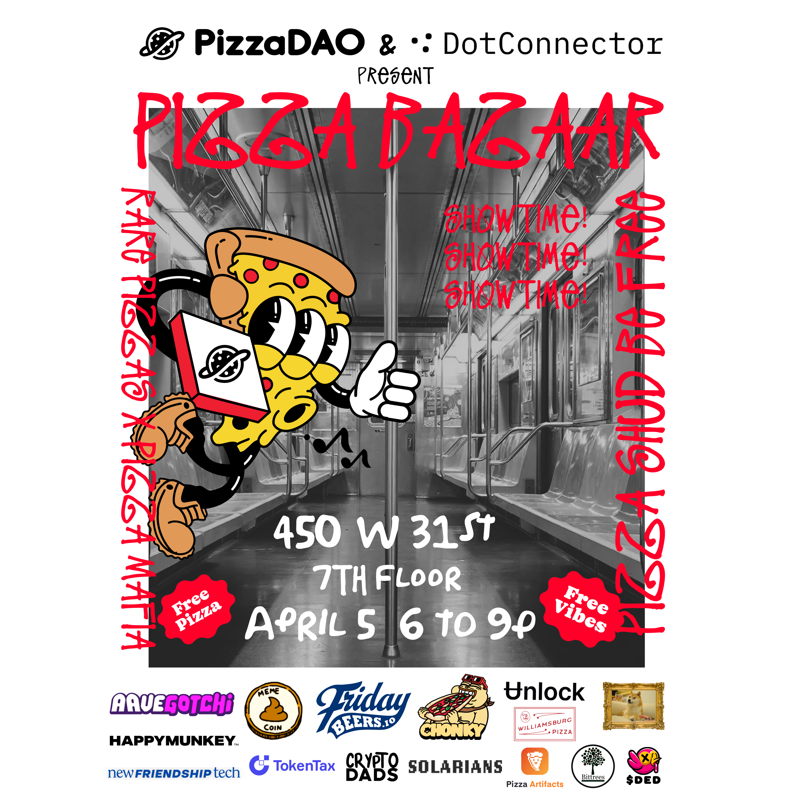 Join PizzaDAO, DotConnector, and friends in NYC for a pizza party! Find us on the 7th floor. Drinks and vegan + gf options available. RSVP doesn't guarantee entry, entrance based on capacity.