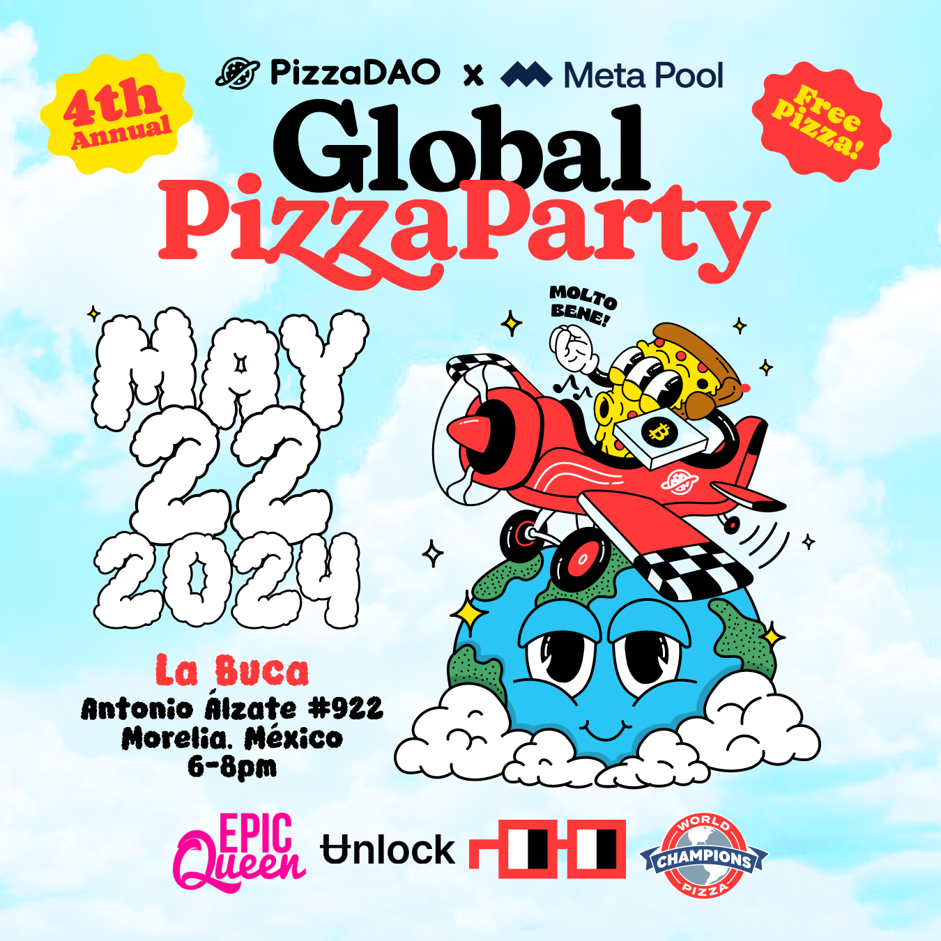 ¡Estás invitado a la 4ta Fiesta Global de la Pizza de PizzaDAO en honor al Bitcoin Pizza Day!