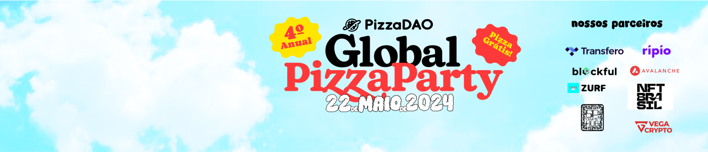 E o que é melhor do que pizza para celebrar? Graças à colaboração com a PizzaDAO, estamos trazendo a maior festa de pizza global para SP. Estamos reunindo criadores e entusiastas de quatro estados brasileiros - Rio de Janeiro, São Paulo, Bahia e Santa Catarina - para alimentar a comunidade com muita pizza e apoio às pizzarias locais.