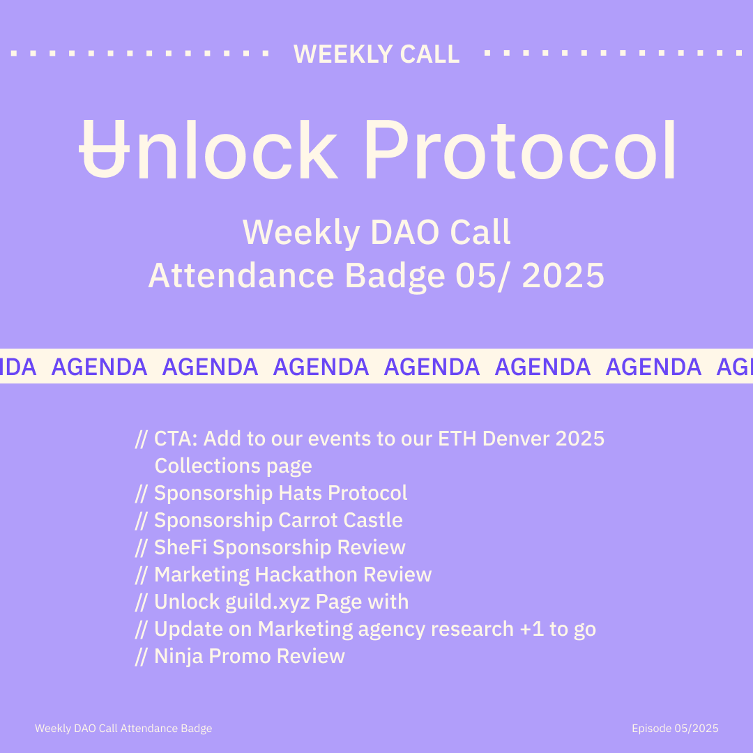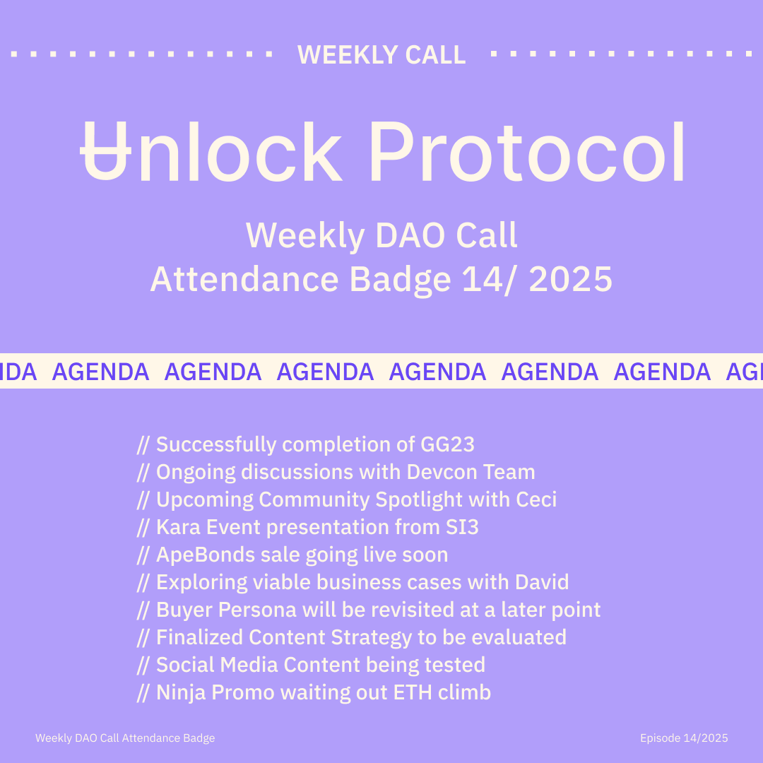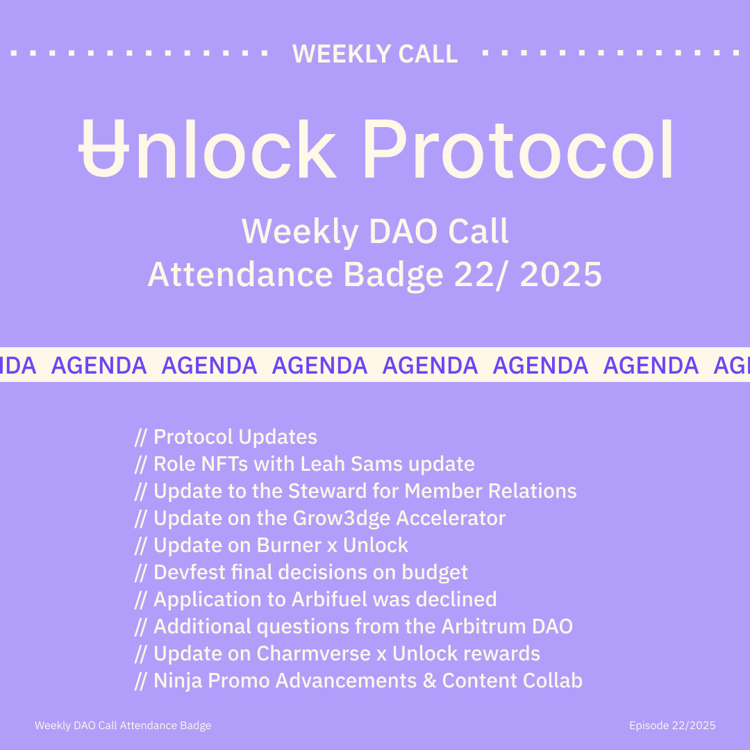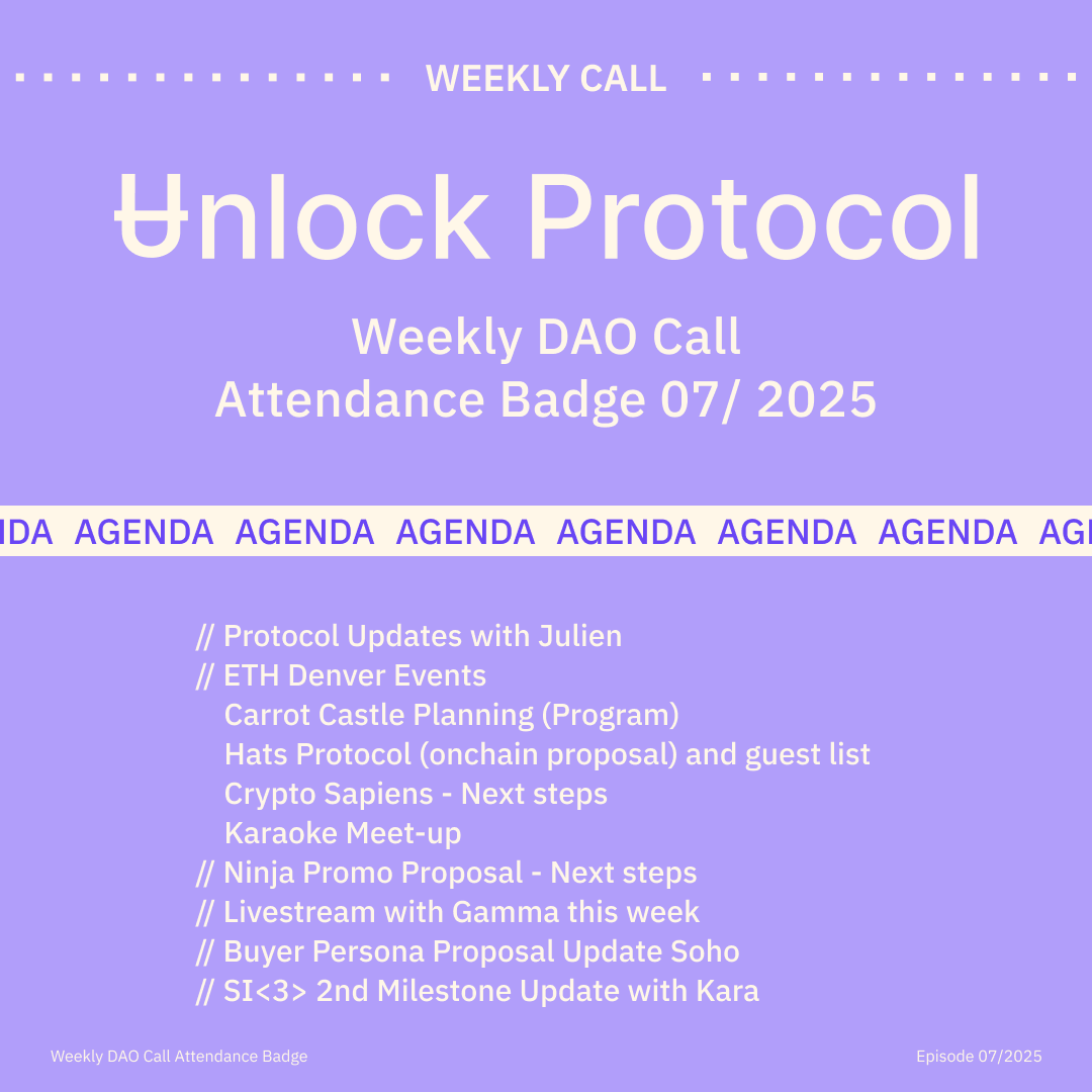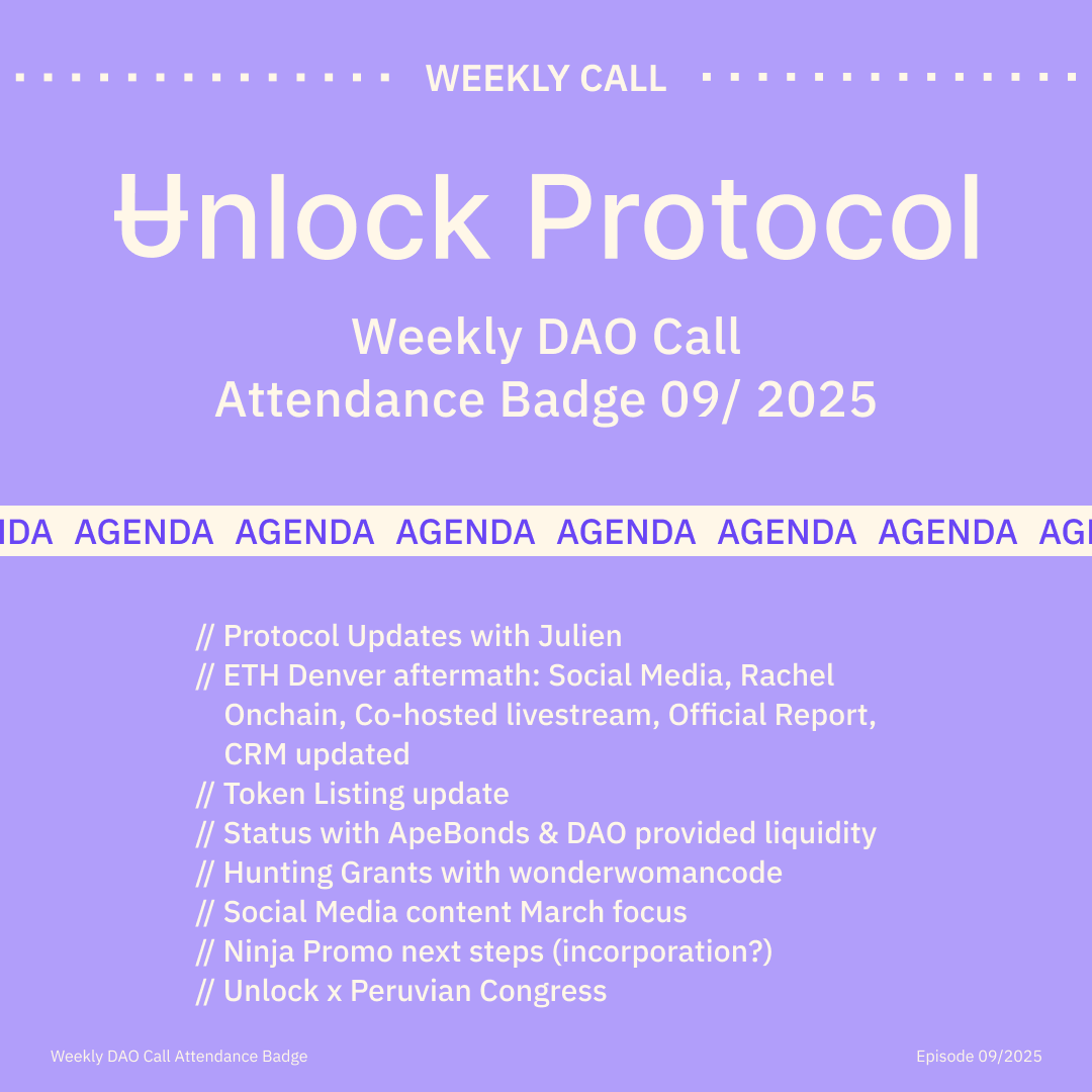 Join the Unlock DAO Charmverse space to learn more about each of our DAO Calls from 2024 and don't miss out on future proof of attendance tokens!